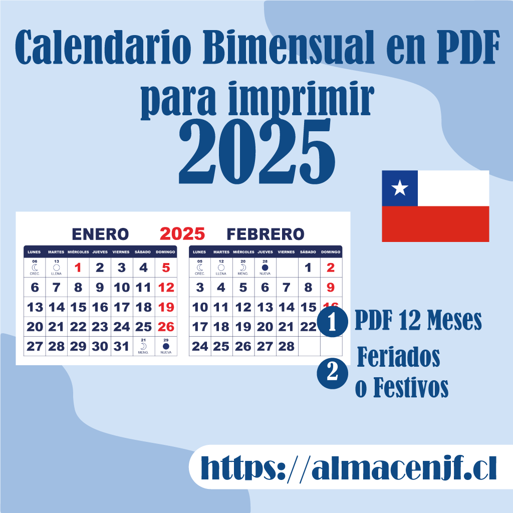Calendario Bimensual 2025 Archivo Digital en PDF imprimible